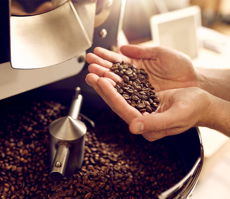 Fresh coffee is roasted and sent in bags.